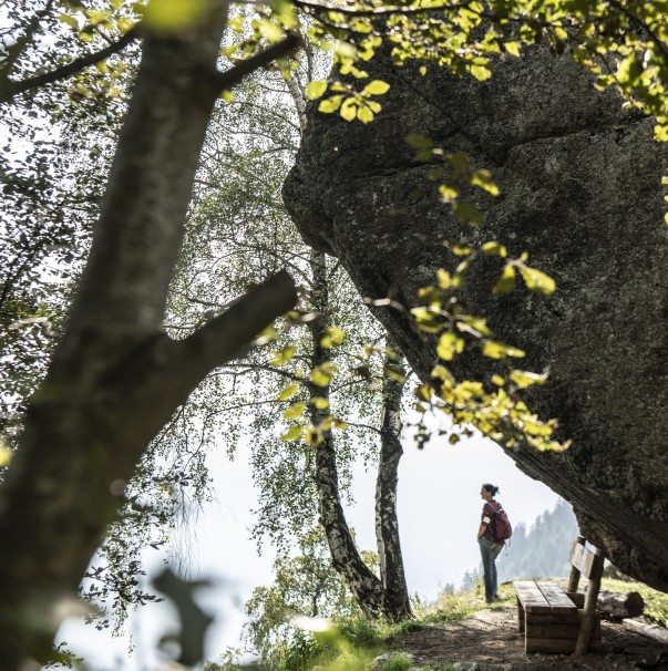 Beneath your feet, the spa town of Meran lies serenely in its valley basin. To right and left, instead of grey housefronts, you can see the far-reaching greenery of the surrounding orchards. All around, meanwhile, the landscape is bounded by the mountains of the Vinschgau Valley and the Texel Group.