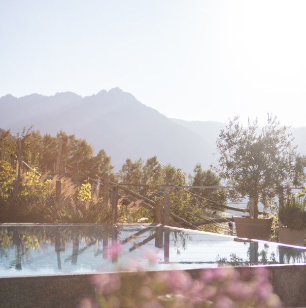 The panorama from the new Niedermair Nature Retreat boasts an even bigger stage, unique in Partschins, with no other hotel rising so free and high above everything else.