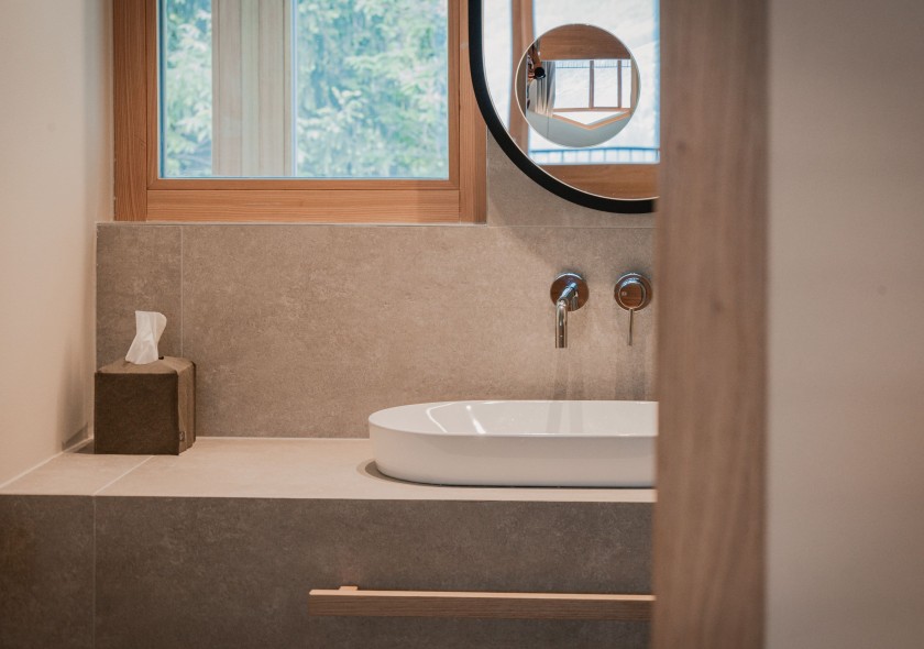 The name of the Nature Sky Suite, with its natural oak flooring, says it all: located on the top floor, under a sloping roof, you are just that little closer to heaven. The floor-to-ceiling windows offer panoramic views from morning to evening, while you can also enjoy the view from the south and north-facing balcony. The Nature Sky Suite has a large bedroom and a small bunk room with a separate bedroom. A private hot tub ensures undisturbed relaxation and a touch of luxury. You can sleep soundly in the comfortable beds made of local woods, or rest in the sofa area.